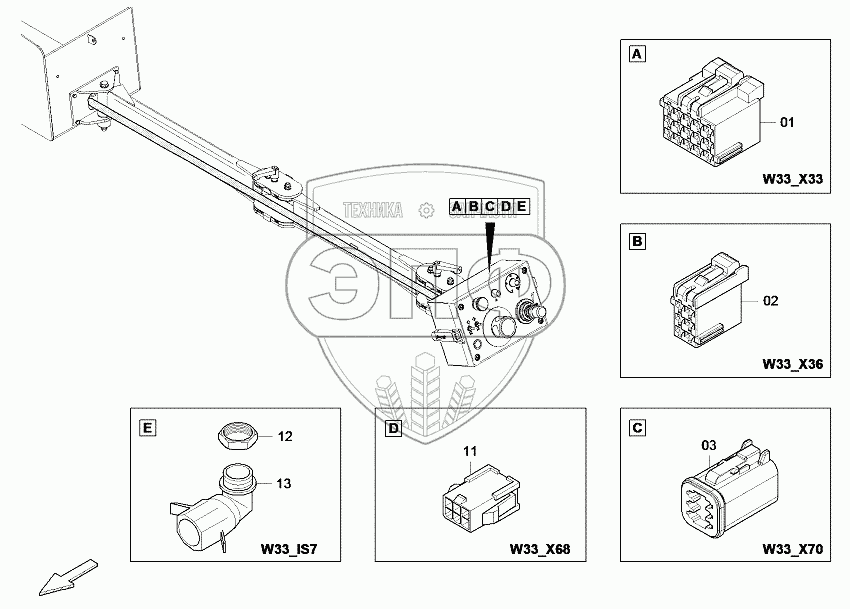 Каталог запасных частей к технике: DYNAPAC Dynapac F1200C/CS. 4812047544 Cable W33