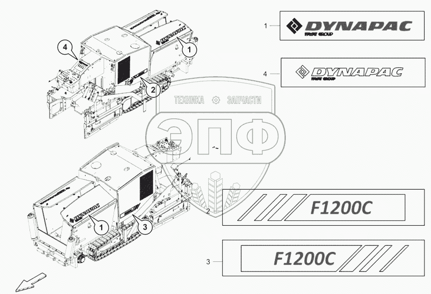 Каталог запасных частей к технике: DYNAPAC Dynapac F1200C/CS. 4812202979 Labeling