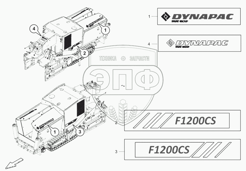 Каталог запасных частей к технике: DYNAPAC Dynapac F1200C/CS. 4812202980 Labeling