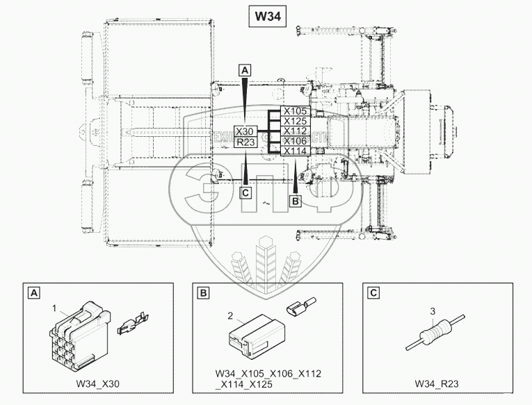 Каталог запасных частей к технике: DYNAPAC Dynapac F1200C/CS. 4812233536 Cable W34