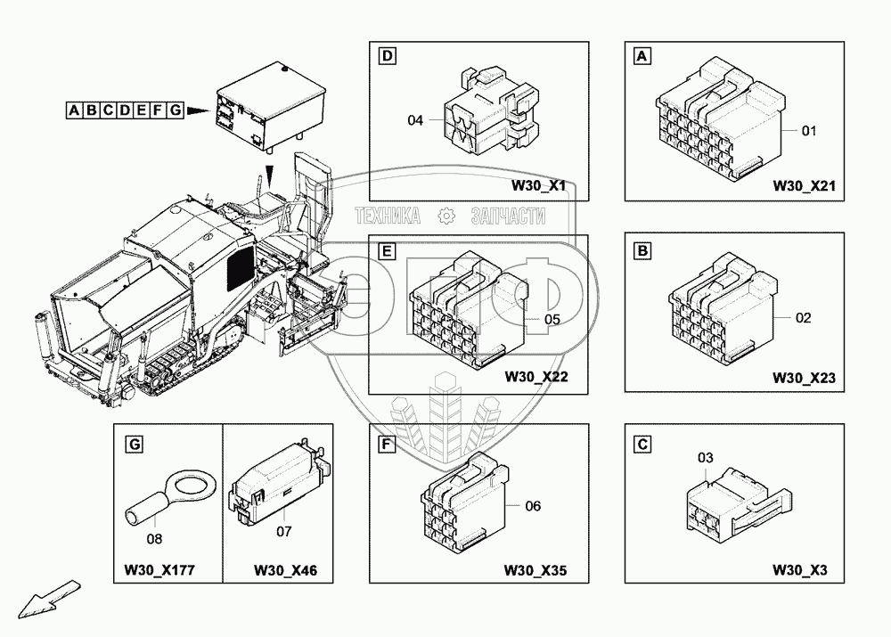 Каталог запасных частей к технике: DYNAPAC Dynapac F1200CS/CS. 4812009557 Cable W30