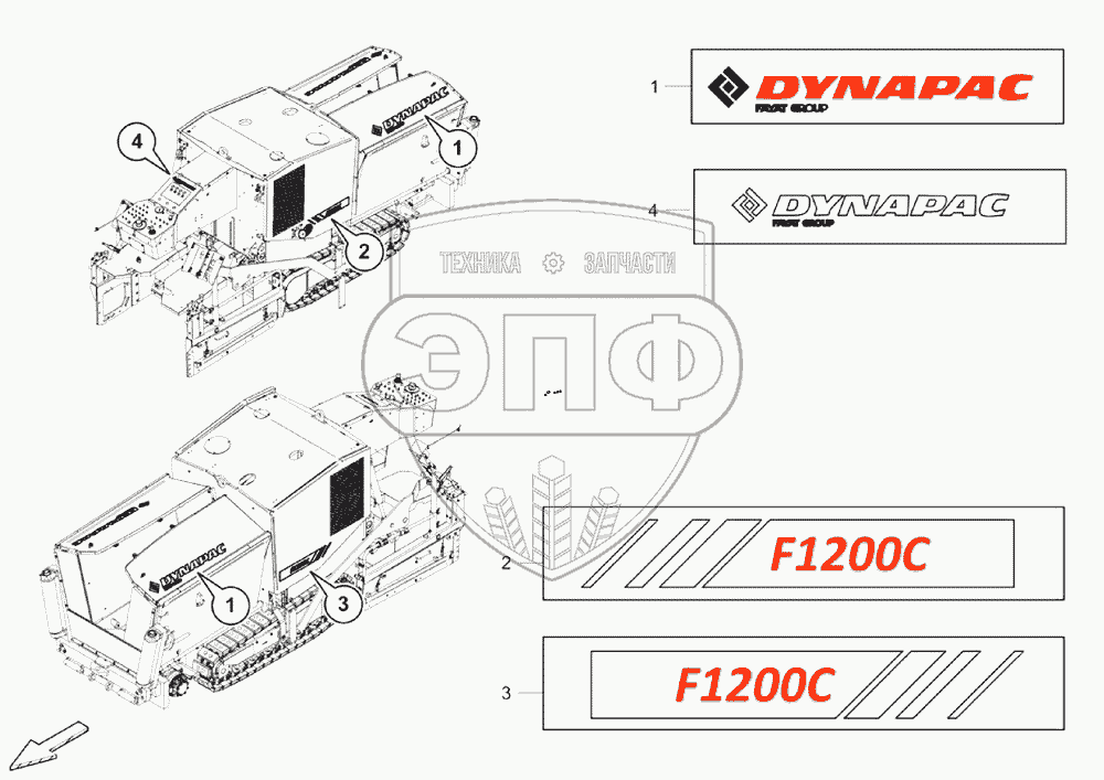 Каталог запасных частей к технике: DYNAPAC Dynapac F1200CS/CS. 4812202979 Labeling