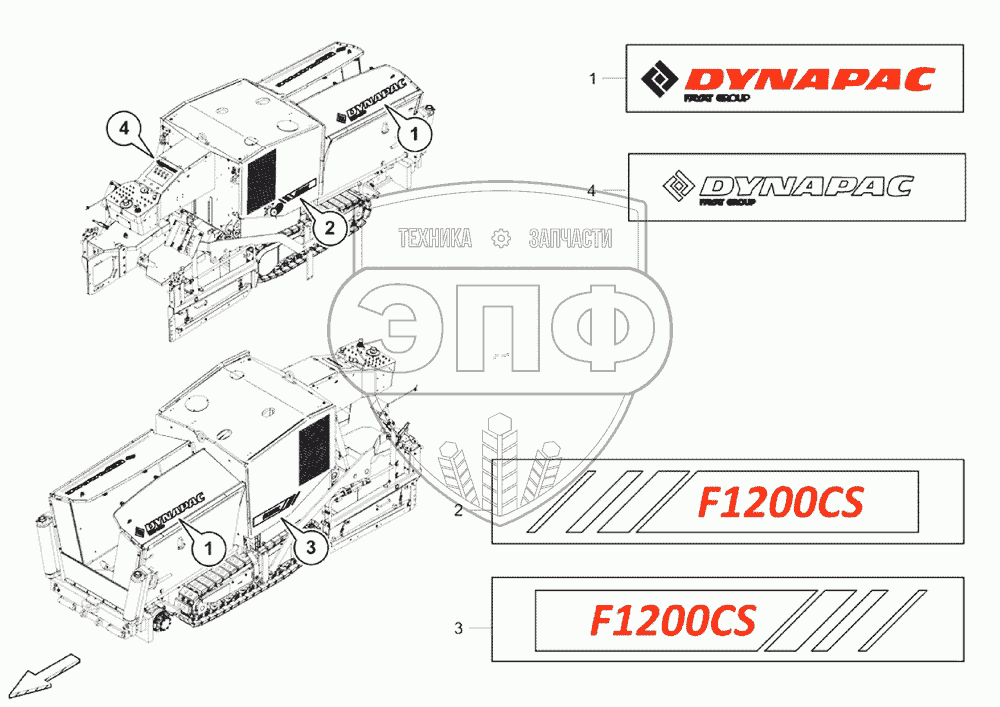 Каталог запасных частей к технике: DYNAPAC Dynapac F1200CS/CS. 4812202980 Labeling