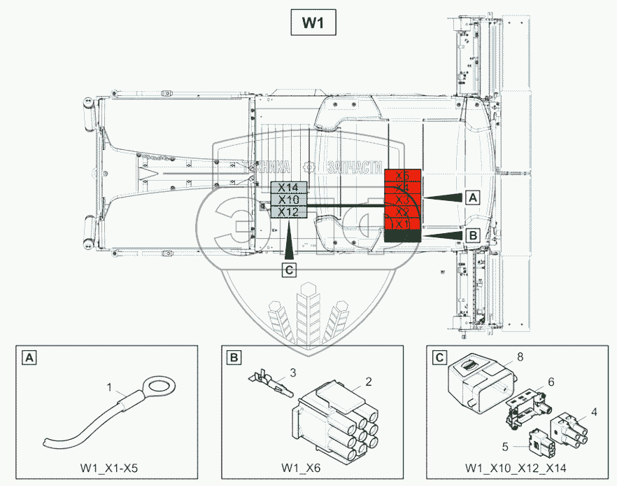 Каталог запасных частей к технике: DYNAPAC Dynapac F1800C. 4812023340 Cable W1