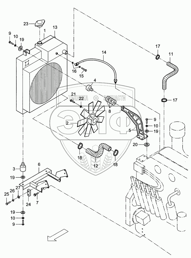 Каталог запасных частей к технике: DYNAPAC Dynapac F181C. Water oil cooler
