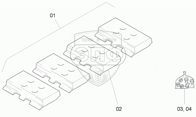 Каталог запасных частей к технике: DYNAPAC Dynapac F181C. Wear part kit rubber bottom plates
