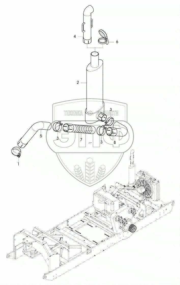 Каталог запасных частей к технике: DYNAPAC Dynapac PL2000LS. 504-06130 Eхhaust system