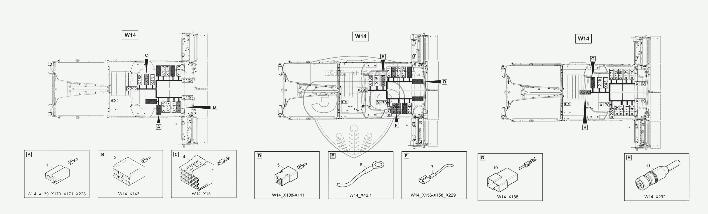 Каталог запасных частей к технике: DYNAPAC F2500C. 4812011095 Harness W14