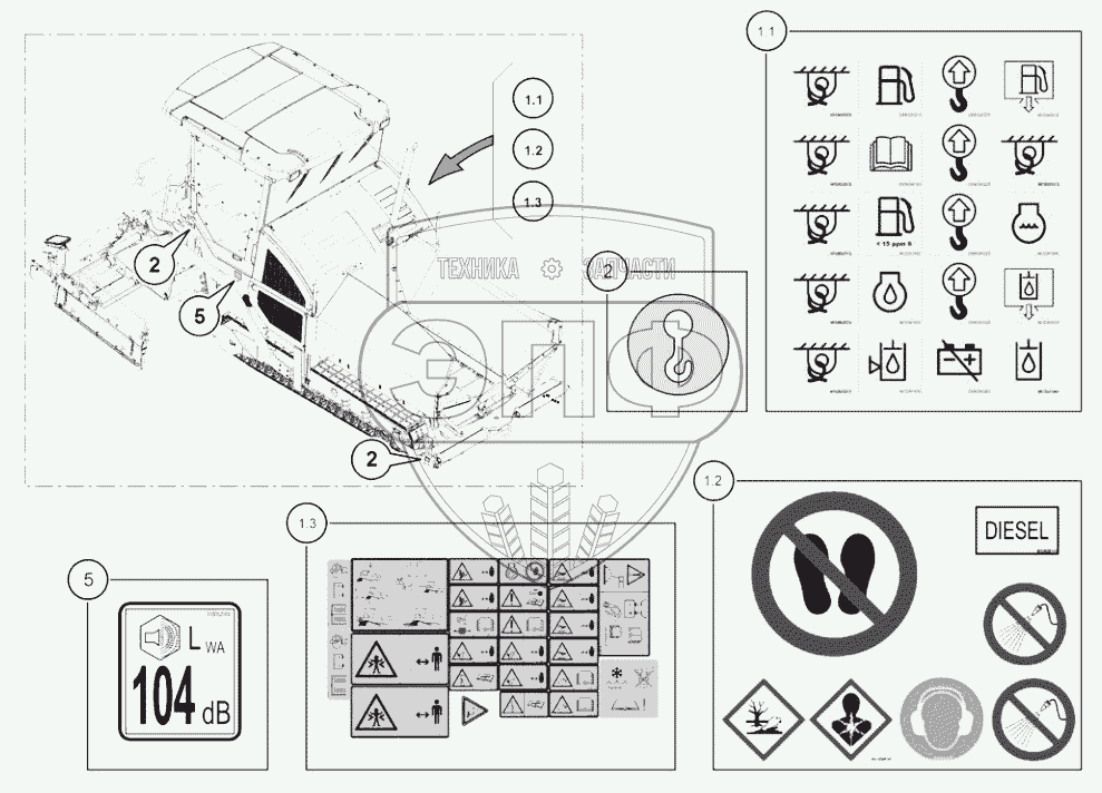 Каталог запасных частей к технике: DYNAPAC F2500C. 4812011157 Decals tracked paver F
