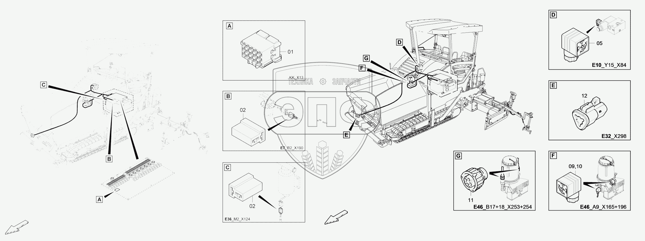 Каталог запасных частей к технике: DYNAPAC SD2550CS. 4812029858 Cable harness W13