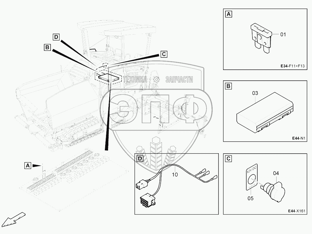 Каталог запасных частей к технике: DYNAPAC SD2550CS. 4812029936 12V installation