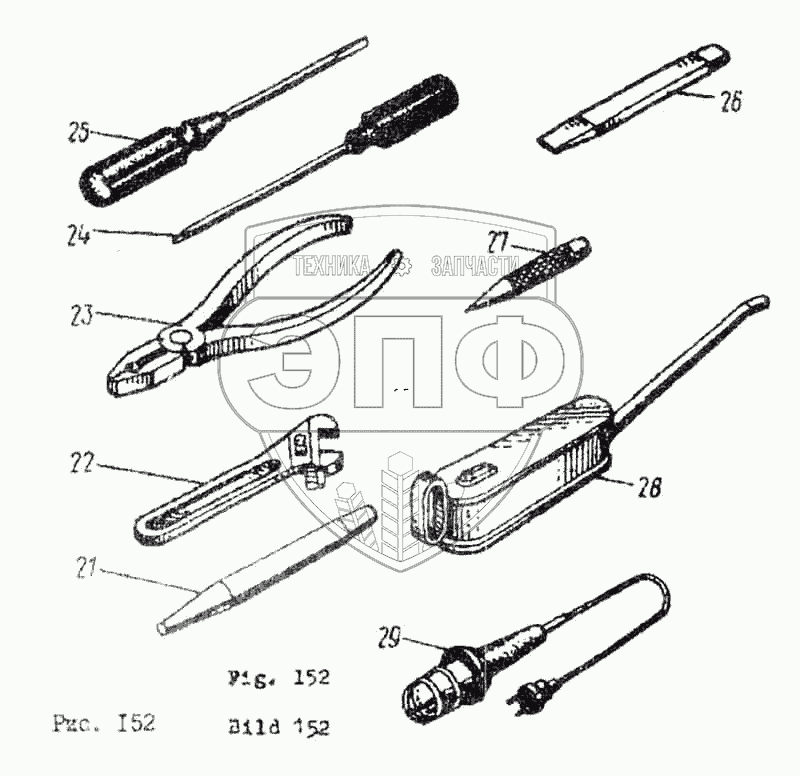 Каталог запасных частей к технике: ЭКСКО ЭО-5111Б. Инструмент и принадлежности к экскаватору