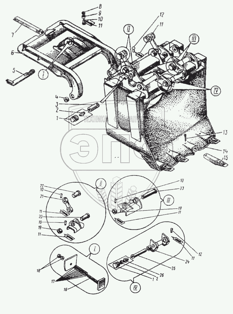 Каталог запасных частей к технике: ЭКСКО ЭО-5111Б. Ковш вместимостью 1.2м3
