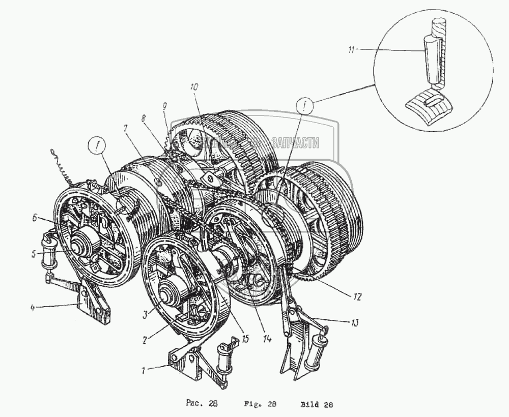| 15 | Э10011А-0612А-0 | Натяжное устройство напорно-возвратной цепи | Нет на складе |