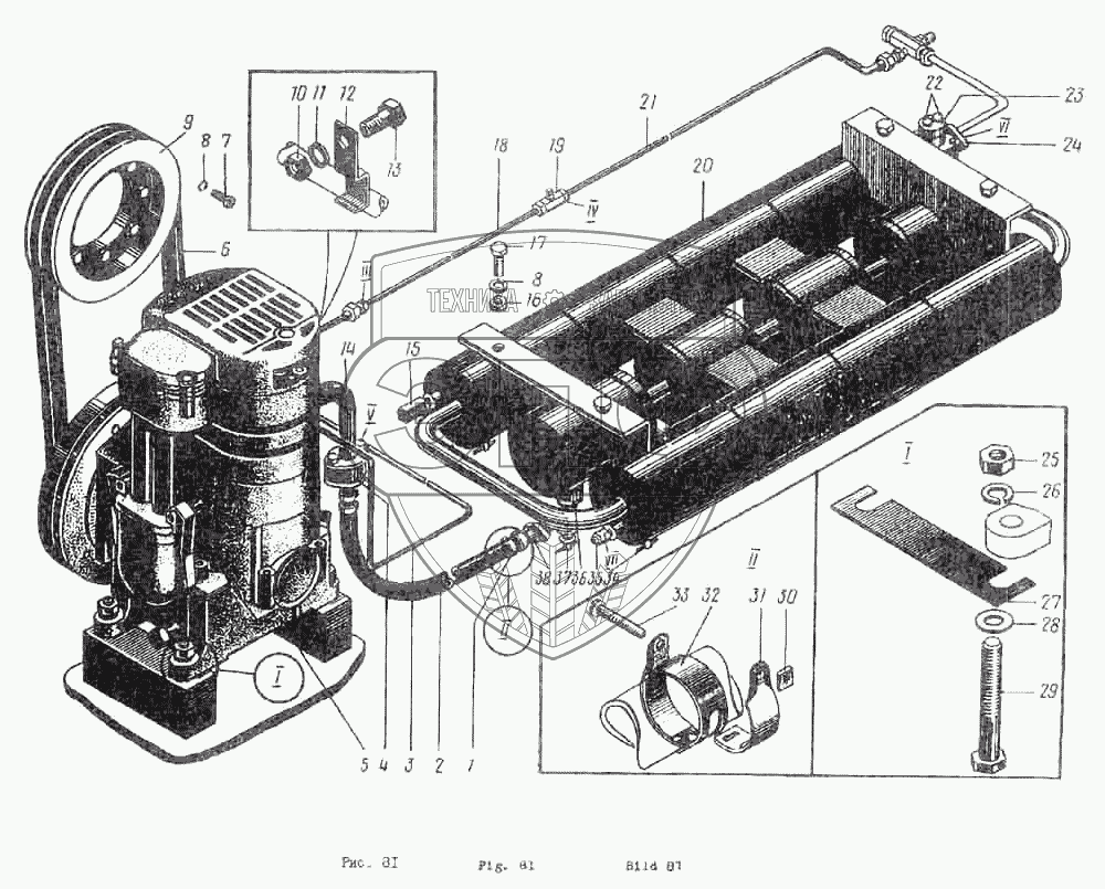 Каталог запасных частей к технике: ЭКСКО ЭО-5111Б. Установка компрессора