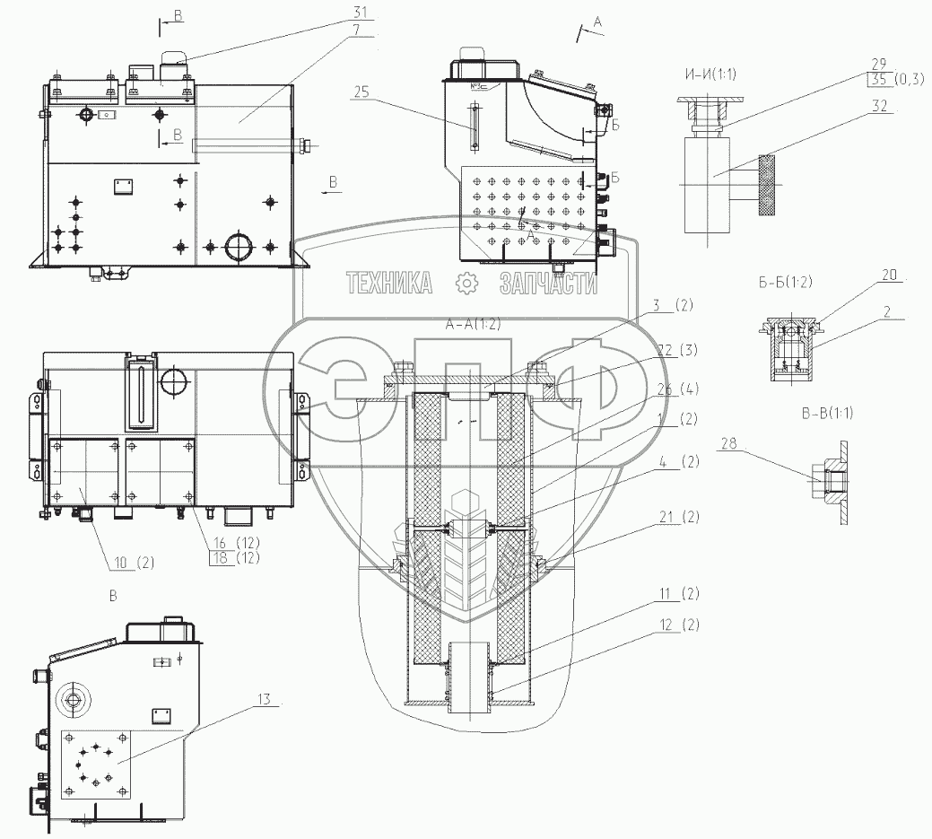 Каталог запасных частей к технике: ЭКСМАШ E130W. Бак гидравлический 130-00-40.10.000