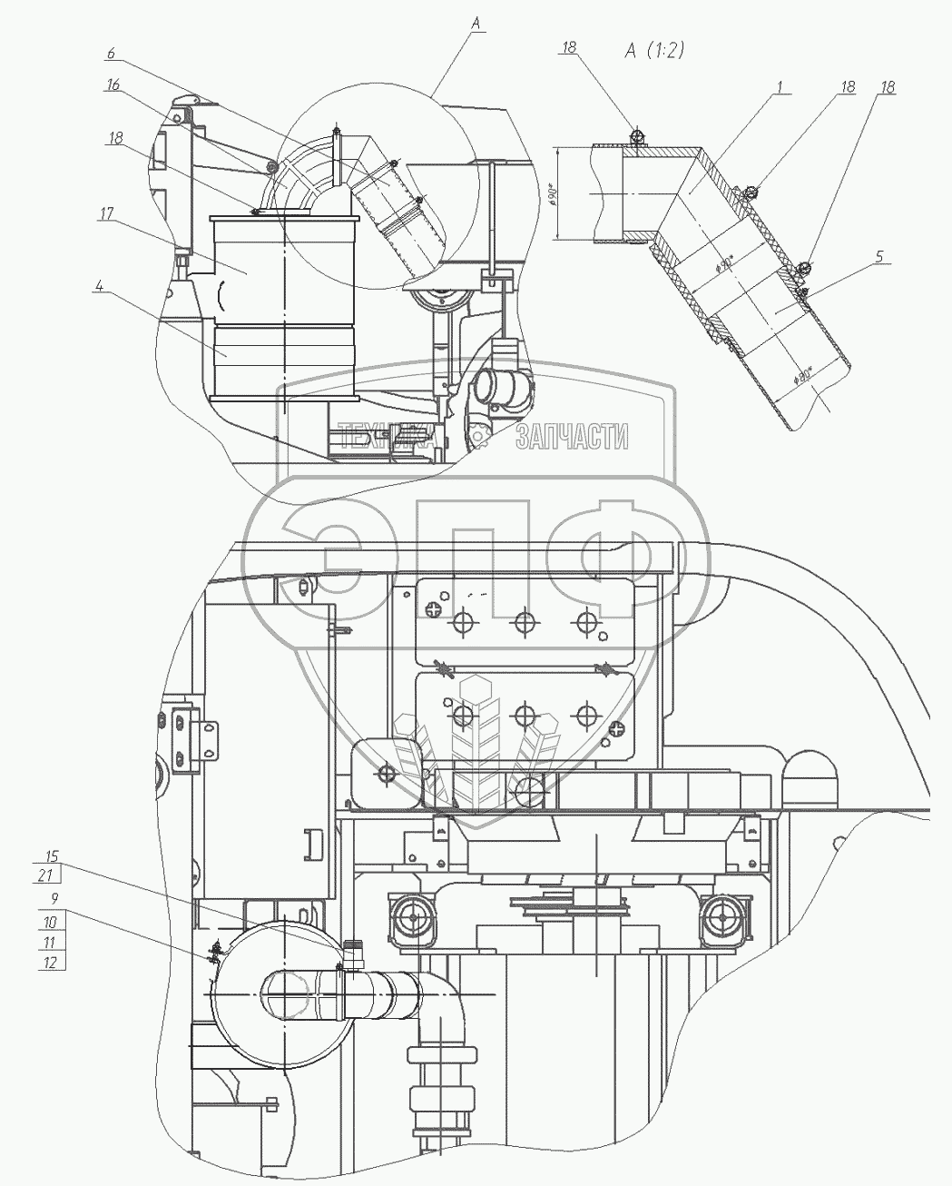 Каталог запасных частей к технике: ЭКСМАШ E130W. Установка воздухоочистителя 130-00-28.04.000