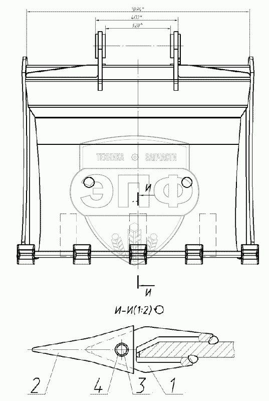 Каталог запасных частей к технике: ЭКСМАШ E160W. Ковш 160-00-80.80.100