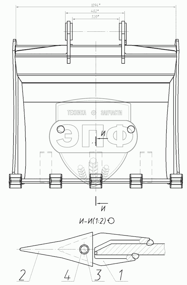 Каталог запасных частей к технике: ЭКСМАШ E180R. Ковш 160-00-80.80.100