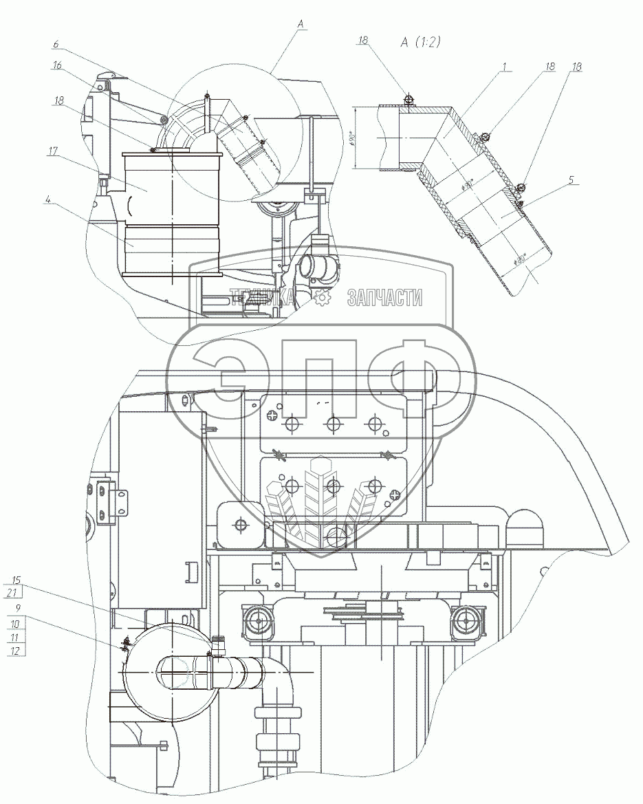 Каталог запасных частей к технике: ЭКСМАШ E180R. Установка воздухоочистителя 130-00-28.04.000