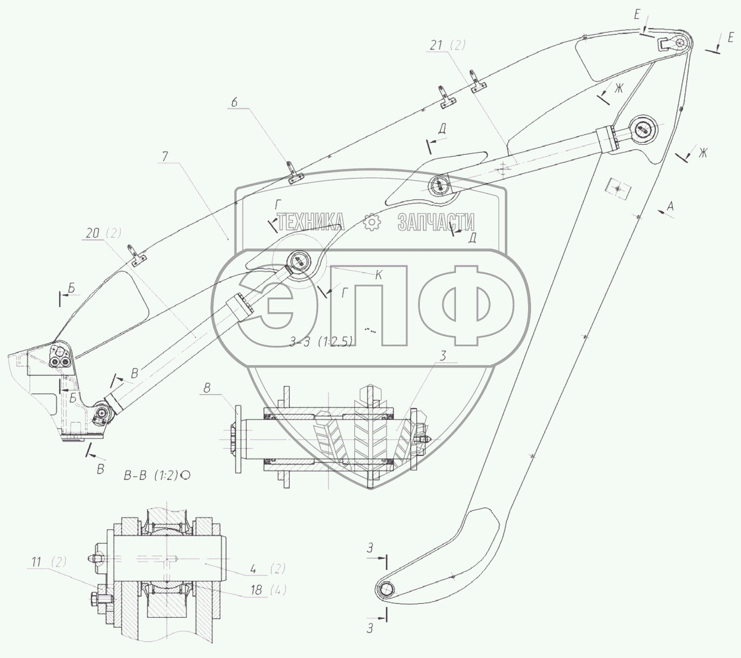 Каталог запасных частей к технике: ЭКСМАШ E190WH. Рабочее оборудование
