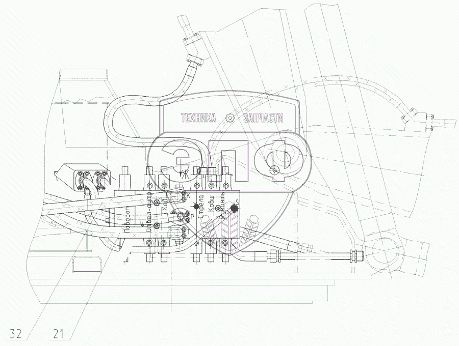 Каталог запасных частей к технике: ЭКСМАШ E190WH. Трубопроводы на поворотной платформе