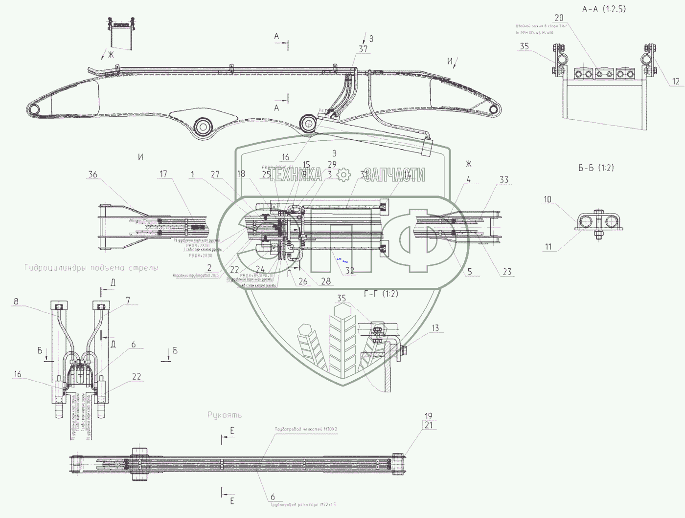 Каталог запасных частей к технике: ЭКСМАШ E190WH. Трубопроводы рабочего оборудования