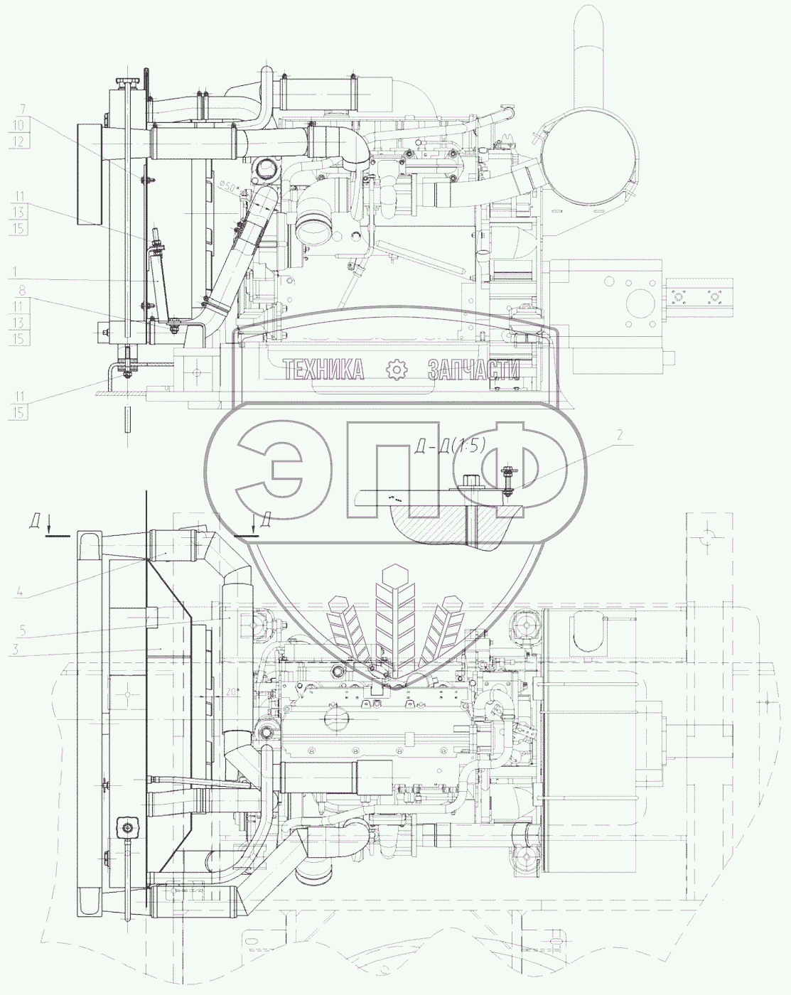 Каталог запасных частей к технике: ЭКСМАШ E190WH. Установка блока радиаторов