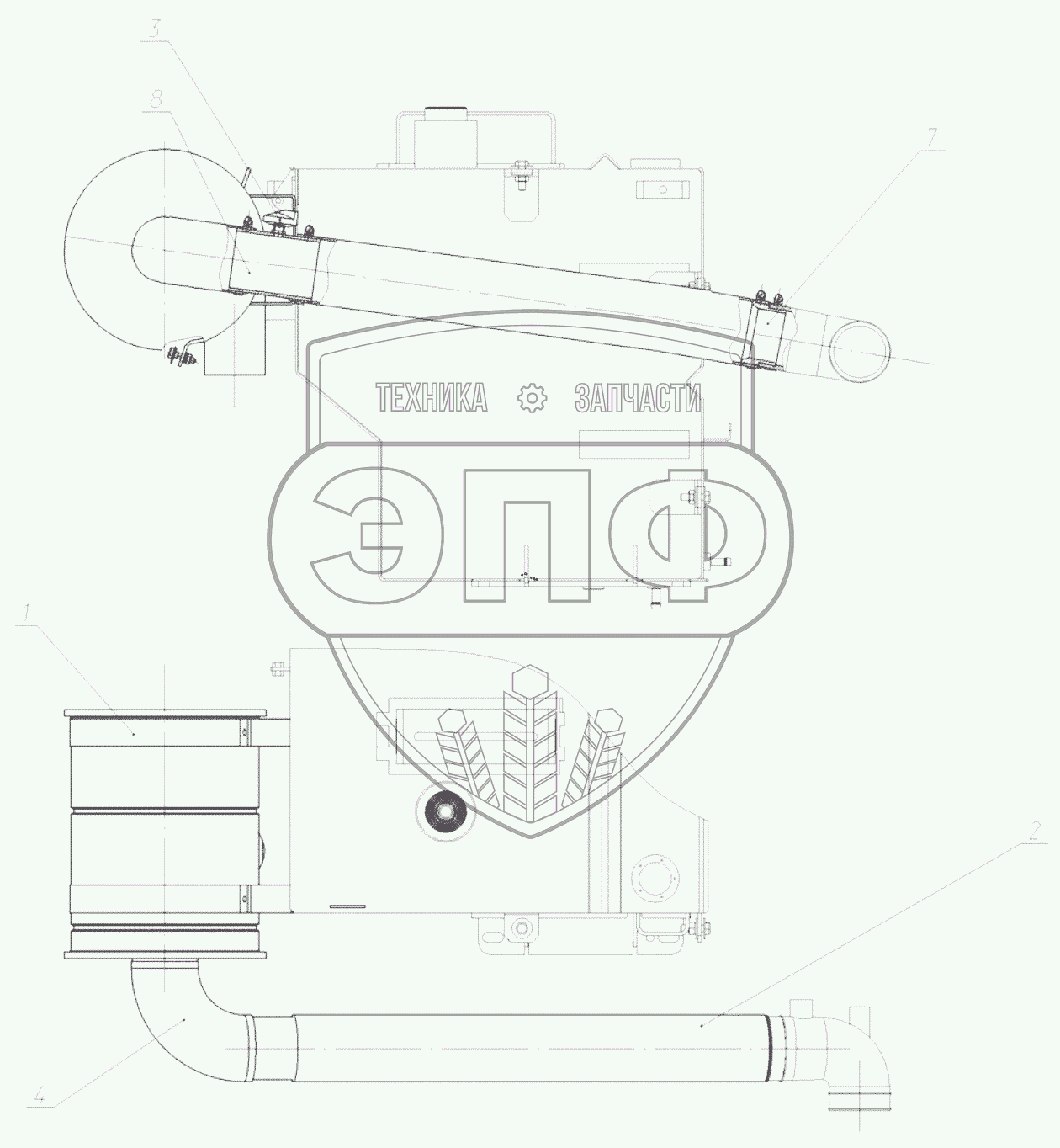 Каталог запасных частей к технике: ЭКСМАШ E190WH. Установка воздухоочистителя
