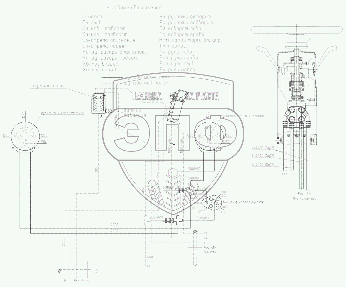 Каталог запасных частей к технике: ЭКСМАШ E230W. Гидроуправление в кабине экскаватора