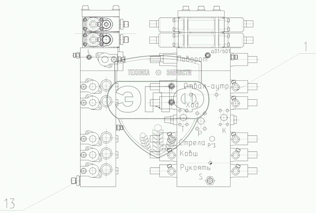 Каталог запасных частей к технике: ЭКСМАШ E230W. Сборка распределителя