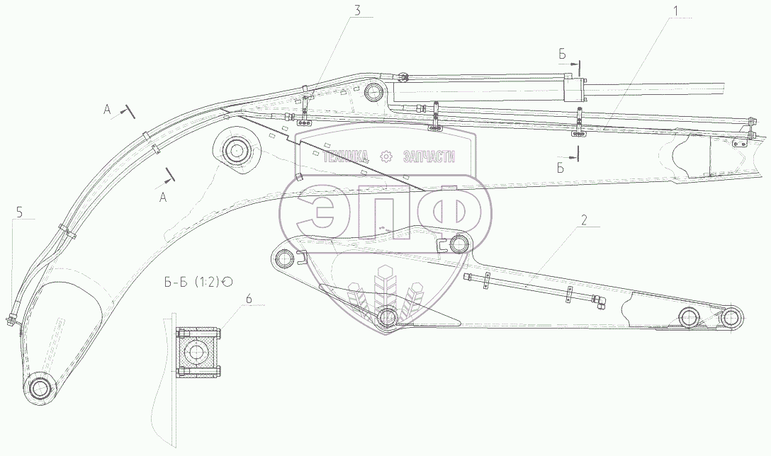 Каталог запасных частей к технике: ЭКСМАШ E230W. Трубопроводы гидромолота на рабочем оборудовании