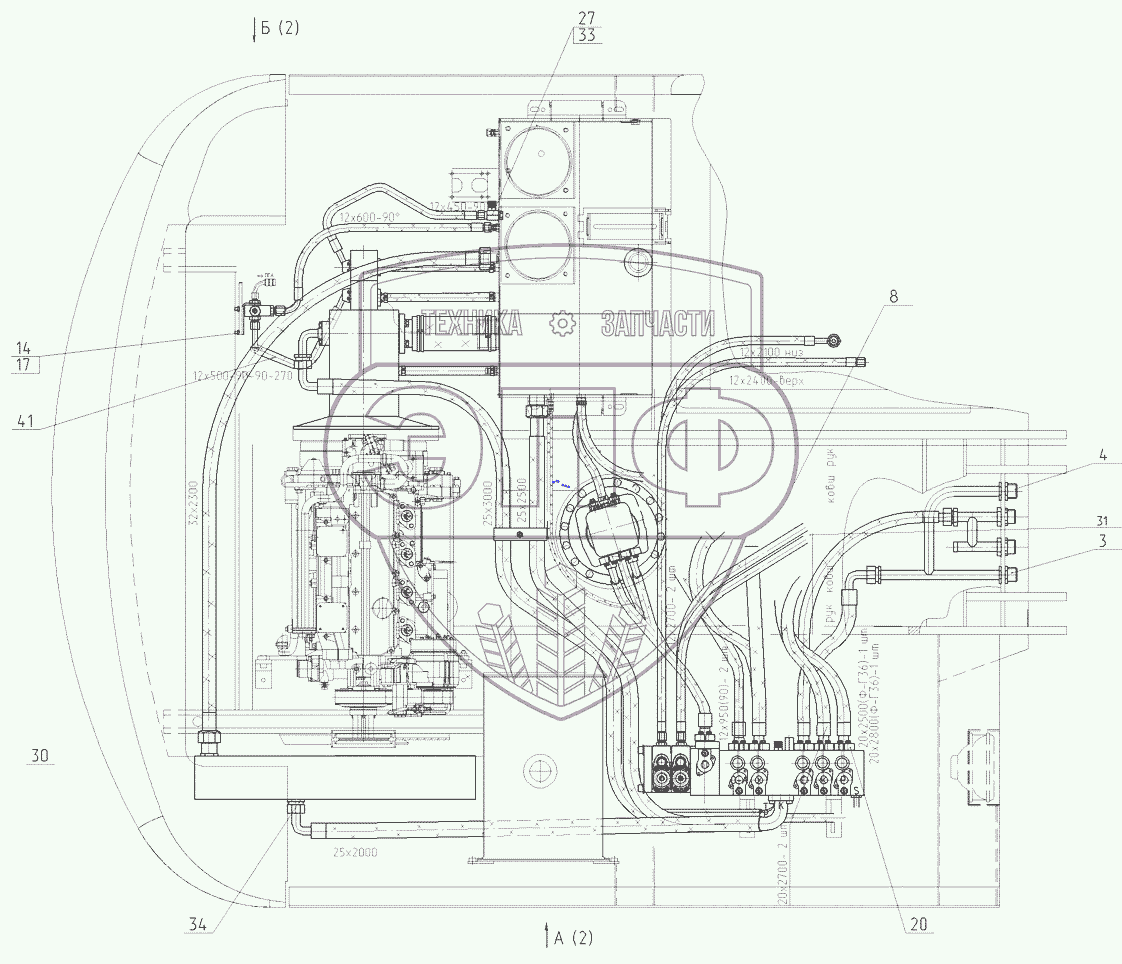 Каталог запасных частей к технике: ЭКСМАШ E230W. Трубопроводы на поворотной платформе
