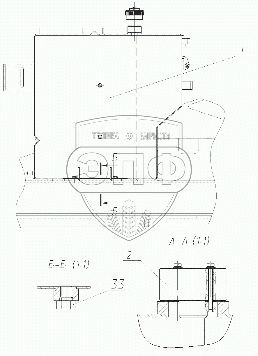 Каталог запасных частей к технике: ЭКСМАШ E230W. Установка бака топливного