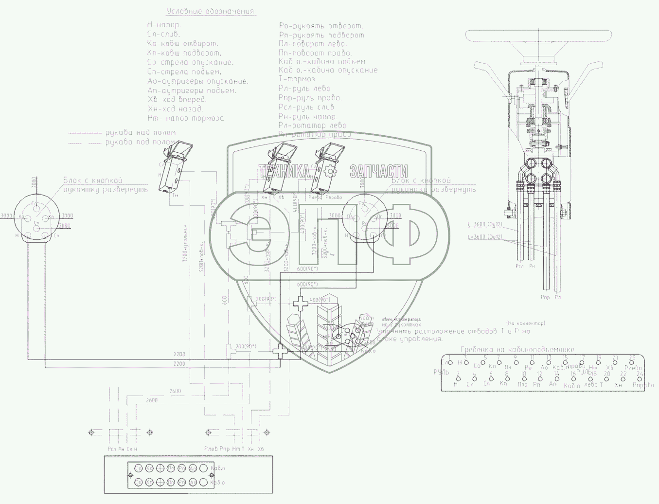Каталог запасных частей к технике: ЭКСМАШ E230WH. Гидроуправление в кабине экскаватора