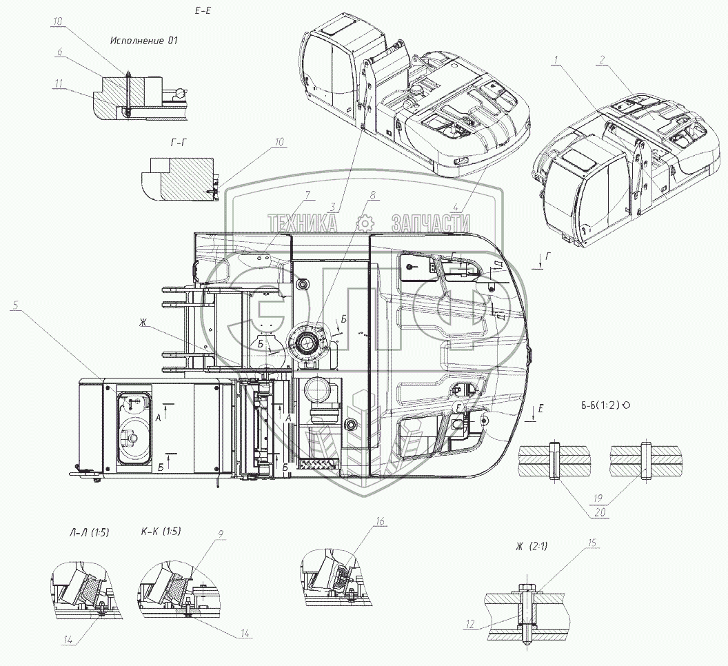 Каталог запасных частей к технике: ЭКСМАШ E230WH. Платформа поворотная с механизмами