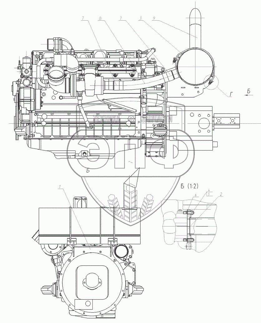 Каталог запасных частей к технике: ЭКСМАШ E230WH. Установка глушителя