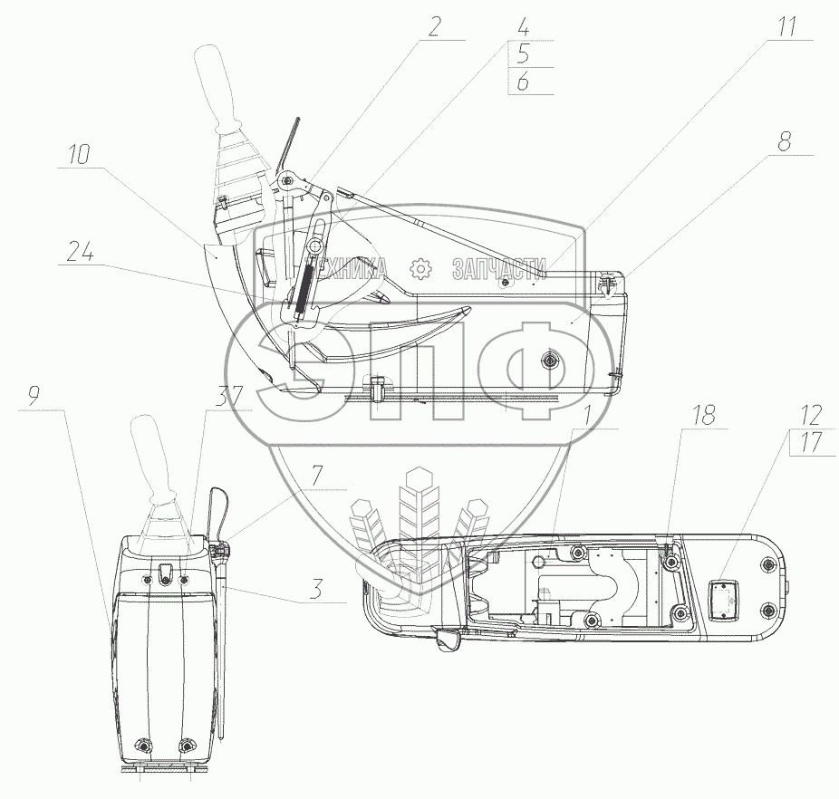 Каталог запасных частей к технике: ЭКСМАШ E230WH. Установка пульта левого