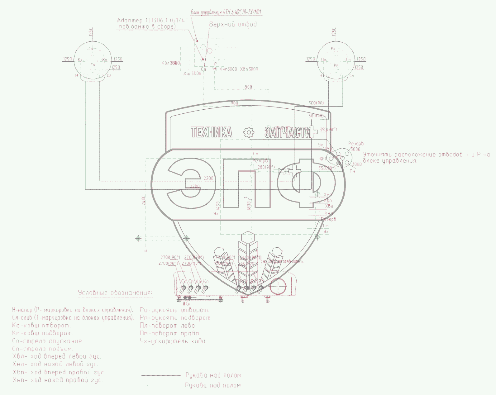 Каталог запасных частей к технике: ЭКСМАШ E240C. Гидроуправление в кабине экскаватора