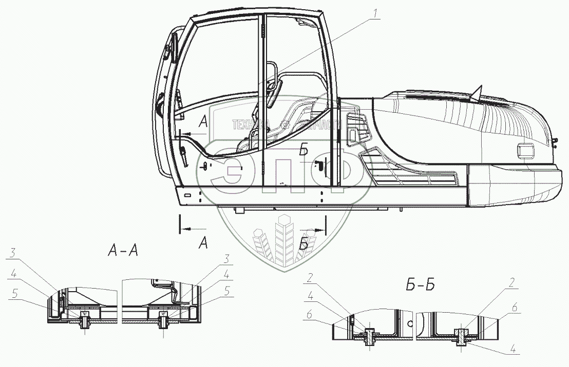 Каталог запасных частей к технике: ЭКСМАШ E240C. Установка кабины