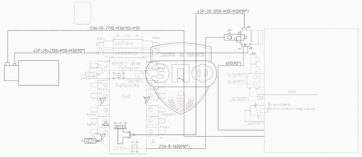 Каталог запасных частей к технике: ЭКСМАШ E280WH. Гидрооборудование генератора магнитной шайбы