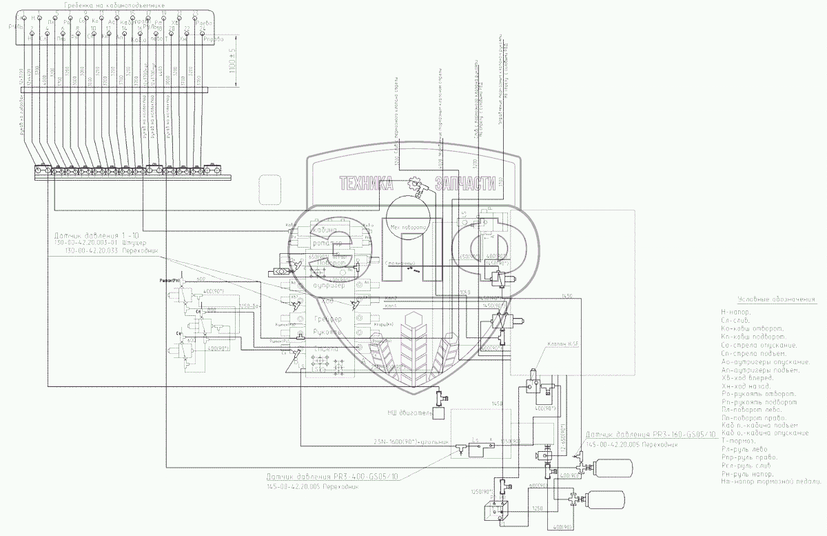 Каталог запасных частей к технике: ЭКСМАШ E280WH. Гидроуправление на поворотной платформе