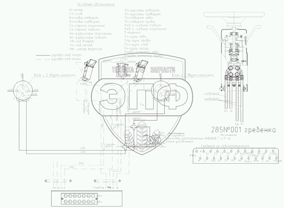 Каталог запасных частей к технике: ЭКСМАШ E280WH. Гидроуправление в кабине экскаватора