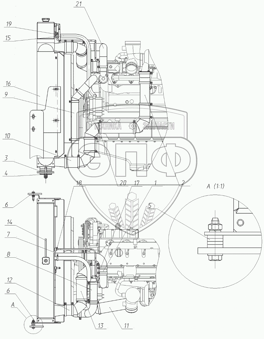 Каталог запасных частей к технике: ЭКСМАШ E280WH. Установка блока радиаторов