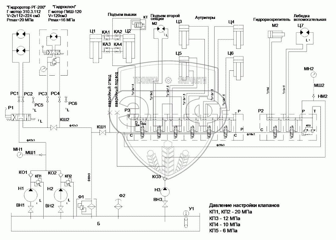 Каталог запасных частей к технике: ЕлАЗ АПР-60/80. Схема гидравлическая принципиальная
