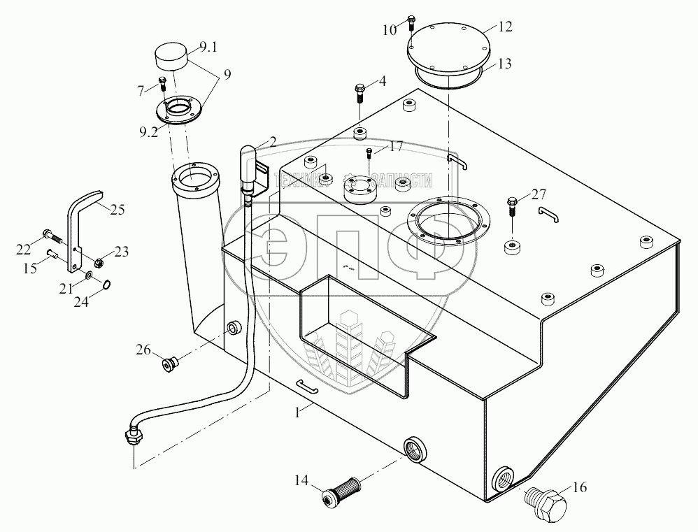 Каталог запасных частей к технике: Foton FL935E. 9D650-08A000000A0 Fuel tank assembling