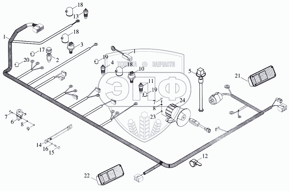 | 1 | 9D637-6401000 | Жгут задней полурамы | Нет на складе | |