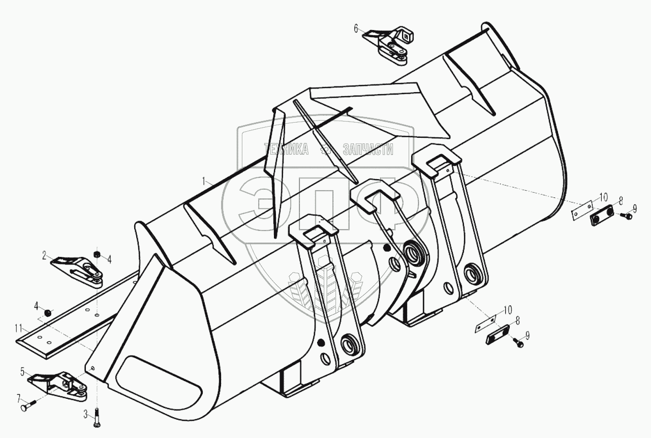 Каталог запасных частей к технике: Foton-FL958G. 9F858-73L000000B0 STANDARD BUCKET ASSEMBLY