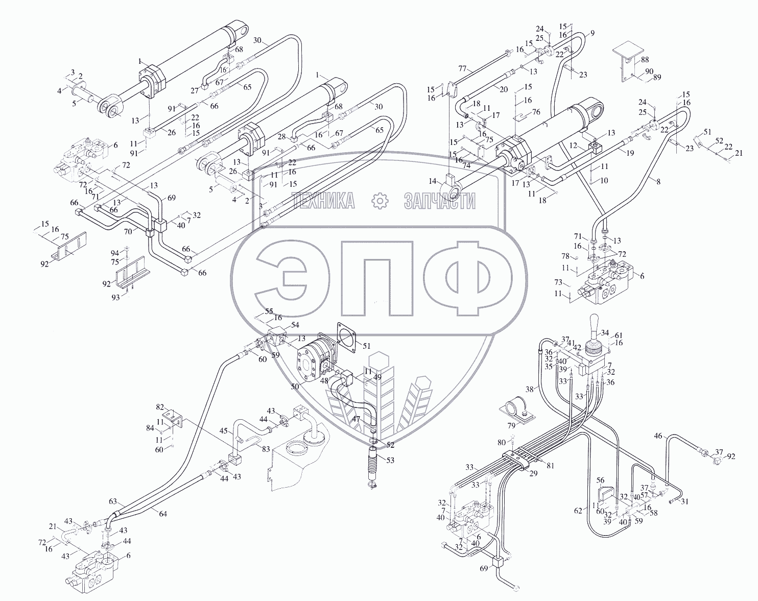Каталог запасных частей к технике: Foton-FL958G. Гидравлическая система рабочей аппаратуры