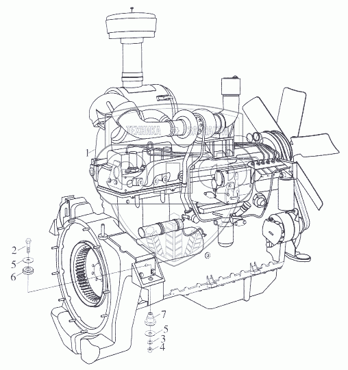 Каталог запасных частей к технике: Foton-FL958G. Монтаж двигателя